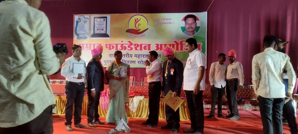 अहमदनगर प्रतिनिधी (दि.३ एप्रिल):-अहमदनगर जिल्ह्यातील रहिवासी ज्येष्ठ समाजसेविका व उद्योजिका,प्रवक्ता,गायिका,सौ.आरती हालदार मॅडम यांना महाराष्ट्र भूषण पुरस्काराने येवला जिल्हा नाशिक येथे सम्मानित करण्यात आले.सौ.आरतीजी हालदार मॅडम यांना 2 एप्रिल 2023 रोजी येवला येथे सम्राट फाऊंडेशन वतीने प्रमुख पाहुने म्हणुन आमंत्रित करण्यात आले होते,शिक्षण,क्रिडा,कला,माजी सैनिक असे अनेक क्षेत्रात आपल्या कर्तुत्वाने वर्चस्व गाजवणारे महिला,पुरुष,मुले व मुली यांना हालदार मॅडम यांच्या हस्ते पारितोषिक देण्यात आले,तसेच सौ.हालदार मॅडम यांनाही यावेळी महाराष्ट्र भूषण पुरस्काराने सन्मानित करण्यात आले.