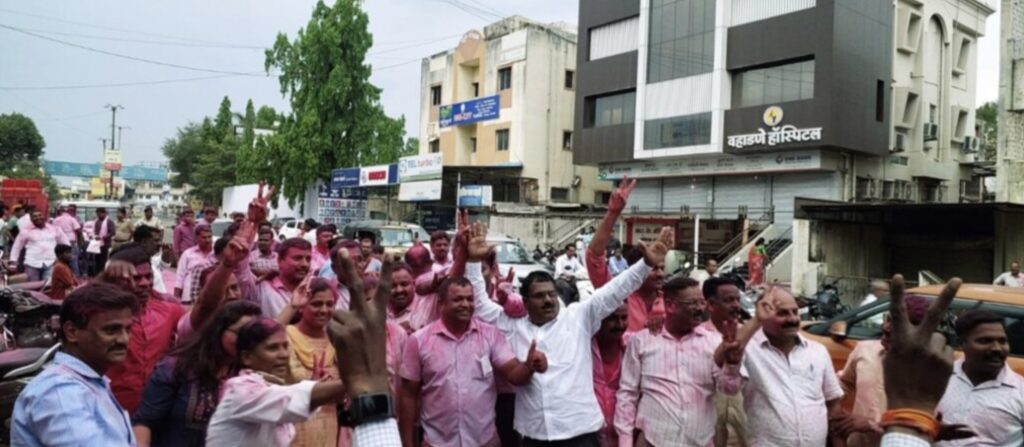 अहमदनगर प्रतिनिधी (दि.९ एप्रिल):-जिल्हा पोलीस क्रेडिट सोसायटीच्या निवडणुकीसाठी रविवार दि.९ एप्रिल२०२३ रोजी सकाळी मतदान झाले.व संध्याकाळी मतमोजणी होऊन निकाल जाहीर झाला. या निवडणुकीत पोलीस अंमलदार रेवननाथ दहिफळे व संदीप घोडके यांच्या नेतृत्वाखालील परिवर्तन पॅनलचा दणदणीत विजय झाला.सोसायटीचा कारभार ऑनलाईन पद्धतीने करण्यासह कर्ज मर्यादा वाढवण्यात आली.तसेच कर्ज मंजुरीचा कालावधी देखील कमीत कमी करण्याचं अभिवचन परिवर्तन पॅनलच्या उमेदवारांनी दिलं होतं.जिल्हा पोलीस क्रेडिट सोसायटीतर्फे देण्यात येणाऱ्या कर्जाला विमा संरक्षण देण्यासह जामीनदाराला टेंशन मुक्त करण्याचे अभिवचन देखील परिवर्तन पॅनेलच्या उमेदवारांनी दिलं होतं.यावर सोसायटीच्या सभासदांनी विश्वास ठेवला आणि परिवर्तन पॅनलचा दणदणीत विजय मिळवून दिला.