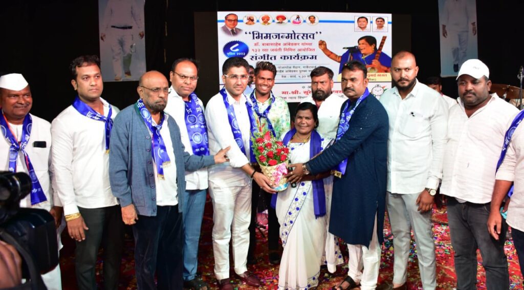 अहमदनगर प्रतिनिधी(दि.९ एप्रिल)-डॉ.बाबासाहेब आंबेडकर यांच्या १३२ व्या जयंतीनिमित्त शहराचे आमदार संग्राम जगताप यांच्या मार्गदर्शनाखाली व राष्ट्रवादी काँग्रेस पार्टीचे सामाजिक न्याय विभागाचे शहर जिल्हाध्यक्ष सुरेश बनसोडे यांच्या वतीने भव्य भीम महोत्सवाचे आयोजन केले असून कार्यक्रमाची सुरुवात छत्रपती शिवाजी महाराज व डॉ.बाबासाहेब आंबेडकर यांच्या पुतळ्यास पुष्पहार अर्पण करून वंदन गीताने पाजरपोळ मैदान डॉ.बाबासाहेब आंबेडकर चौक मार्केटयार्ड येथे प्रसिद्ध गायिका कडूबाई खरात यांच्या विविध भीम गीताने सुरुवात करण्यात आली यामध्ये “तुम्ही खाताय त्या भाकरीवर बाबासाहेबांची सही हाय र”, “सोन्यात भरली ओटी”, भीमराव पावर फुल”, “तिथं जन्मले भीमराव”, राजमाता जिजाऊ यांचा पोवाडा व शिवाजी महाराजांचा पोवाडा हे भीम गीत व पोवाडे ऐकून प्रेक्षक व भीमसैनिक मंत्रमुग्ध झाले.व उपस्थित त्यांनी भीम गीतावर ठेका धरला तर यावेळी आमदार संग्राम जगताप म्हणाले की डॉ.बाबासाहेब आंबेडकर यांच्या जयंतीनिमित्त आयोजित गायनाच्या कार्यक्रमानिमित्त कडूबाई खरात यांचा कार्यक्रम राष्ट्रवादीचे नेते सुरेश बनसोडे यांच्या पुढाकारातून संपन्न झाले असून नगर शहरात गायनाच्या माध्यमातून समाज प्रबोधन होणार असून छत्रपती शिवाजी महाराज, डॉ.बाबासाहेब आंबेडकर व अण्णाभाऊ साठे यांच्या गाणे व पोवाडे ऐकून सर्व प्रेक्षकांनी आनंद घेतला तर कडूबाई खरात यांच्या गायनाच्या माध्यमातून समाज प्रबोधन होणार असून तरुण पिढीला समाज प्रबोधनाची गरज आहे.येणारी डॉ.बाबासाहेब आंबेडकर यांची जयंती उत्सव जगामध्ये साजरी होत असून सर्वांनी महापुरुषांचे आचरण करून समाज प्रबोधन ही काळाची गरज आहे. डॉ. बाबासाहेब आंबेडकरांनी जो अधिकार दिला आहे तो समान अधिकार आहे युवा पिढीने डॉ.बाबासाहेबांचे विचार मनामध्ये रुजवावे असल्याची भावना व्यक्त करत सुरेश बनसोडे यांनी कार्यक्रमाला आलेल्या सर्व प्रमुख पाहुण्यांचे स्वागत करत सर्व भीमसैनिकांचे आभार मानले तर यावेळी आमदार संग्राम जगताप,राष्ट्रवादी सामाजिक न्याय विभागाचे शहर जिल्हाध्यक्ष सुरेश बनसोडे,अंकुश मोहिते,अशोक गायकवाड,नगरसेवक विनीत पाऊलबुद्धे,नगरसेवक सुनील त्रिंबके,अजिंक्य बोरकर,अभिजीत खोसे,अजय साळवे,विशाल भिंगारदिवे,पप्पू पाटील,समीर भिंगारदिवे,सिद्धार्थ आढाव,बाली बांगरे,सुमेध गायकवाड,सुजन भिंगारदिवे,महेश आठवले, निखिल कोल्हे,सतीश शिरसाट,येसुदास वाघमारे,सतीश साळवे,श्रीकांत भोसले,जय कदम,सुरज जाधव, योगेश ठुबे,संतोष लांडे,वैभव वाघ,आदीसह भीमसैनिक मोठ्या संख्येने उपस्थित होते या कार्यक्रमाचे सूत्रसंचालन उद्धव काळापहाड यांनी केले.