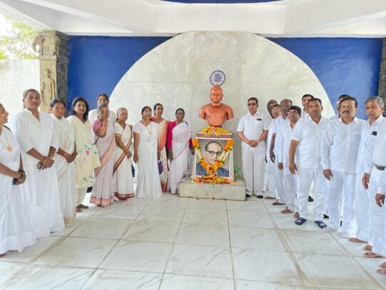 अहमदनगर प्रतिनिधी:-भारतीय बौद्ध महासभा अहमदनगर शहर शाखेतर्फे भगवान बुद्ध यांची 2567 वी जयंती (पौर्णिमा) उत्सव साजरी करण्यात आली.सिद्धीबाग येथील बुद्धविहार येथे शहर शाखेच्या वतीने पुष्पहार अर्पण करून अभिवादन करण्यात आले.यावेळी भगवान गायकवाड,राजेंद्र साळवे,माधवराव चाबुकस्वार,रवींद्र कांबळे,सुनीताताई गायकवाड,गौतम पाचारणे,लक्ष्मण महागडे, कल्पना रोकडे,डी.एम.गायकवाड,गोरख केदारे, अनिल तिजोरे,गुलाब गोरे,लीला पायळ,सिद्धांत कांबळे, चिराग पटेकर,हर्षदा पंचमुख, अर्चना गायकवाड,वृषाल साळवे,कश्यप साळवे,संदेश भोसले,धोंडीबा राक्षे,उमेश मोरे,वसंत पारधे,मालती शिंदे, प्रवीण मुरकुटे,राहुल पायळ, अजित घोडेस्वार,विजय चाबुकस्वार,प्रमिला मगर, अश्विनी जगताप,संगीता खंडागळे,सरला सातपुते,बाळू बनकर,दीपक शिंदे, निलेश भालेराव,विद्या शिंदे आदी उपस्थित होते.या प्रसंगी त्रिसरण बुद्धपूजा पाठ करण्यात आले व भगवान बुद्धांच्या गुणाचे स्मरण करण्यात आले व शहराध्यक्ष राहुल कांबळे यांनी भगवान बुद्ध यांचे जीवन चरित्र सांगितले तर उपाध्यक्ष राम गायकवाड यांनी बुद्धपूजा पाठ घेतला दुपारी धम्मदेसनेचा कार्यक्रम झाला भगवान बुद्धांचे बुद्धत्व प्राप्ती यावर दीपक पाटोळे यांनी प्रवचन दिले.त्यानंतर खीरदान करण्यात आले.त्यानंतर संध्याकाळी डॉ.बाबासाहेब आंबेडकर यांच्या पुतळ्यापासून धम्म रॅली काढण्यात आली.सिद्धीबाग येथे रॅलीचे उत्सव स्वागत करण्यात आले.यावेळी भोजनदान देण्यात आले यात हजारो उपासक सहभागी झाले होते.शहरअध्यक्ष राहुल कांबळे व उपाध्यक्ष राम गायकवाड यांनी सर्वांचे आभार मानले.