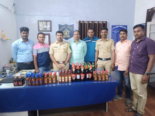अहमदनगर प्रतिनिधी (दि.१० मे):-नगर तालुक्यातील वाळकी येथील गारवा हॉटेलवर अवैद्य विदेशी दारु विक्रीवर नगर तालुका पोलिसांची कारवाई,एकुण १४८५०/-रुपयांचा मुद्देमाल जप्त,बातमीतील हकीकत अशी की,श्री.शिशिरकुमार देशमुख,सहाय्यक पोलीस निरीक्षक, नगर तालुका पोलीस स्टेशन यांनी नगर तालुका पोस्टे हद्दीमध्ये अवैध धंद्यावर करावाई करणेकामी पोउनि/युवराज चव्हाण, पोहेकॉ/सुभाष थोरात, पोहेकॉ/वनवे,पोकॉ/कमलेश पाथरुट,संभाजी बोराडे असे पोलीस अधिकारी व अंमलदार याचे पथक स्थापन करुन अवैध धंद्यावर कारवाई करणेकामी आदेश दिले.सदर आदेशान्वये सदर पथक नगर तालुका पोस्टे हद्दीमध्ये अवैध धंद्यावर करावाई करणेकामी पेट्रोलींग करीत असतांना श्री/ शिशिरकुमार देशमुख, सहायक पोलीस निरीक्षक यांना गुप्त बातमी मिळाली की,वाळकी गावामध्ये गारवा हॉटेल येथे एक इसम बेकायदेशीर विदेशी दारुची मोठयाप्रमाणात विक्री करीत आहे तुम्ही तेथे जावून कारवाई करा असा आदेश दिल्याने सदर पथक हॉटेल गारवा,वाळकी येथे जावून खात्री केली असता एक इसम विदेश दारुची विक्री करतांना दिसला सदर पथकाची व पंचाची खात्री पटताच विदेशी दारुची विक्री करण्याऱ्या इसमाला ताब्यात घेवून त्याचे नाव व गाव विचारले असता त्याने त्याचे नाव रविद्र शिवाजी गोरे (रा.वाळकी ता. जिल्हा अ.नगर) असे असल्याचे सांगितले.त्याची दोन पंचासमक्ष झडती घेतली असता त्याच्या कब्जेमध्ये एकुण १४८५०/- रुपयेचा विविध कंपनीच्या विदेश दारुच्या बाटल्या मिळून आल्या.सदर घटनेबाबत नगर तालुका पोलीस स्टेशन येथे पोकॉ/कमलेश पाथरुट यांच्या फिर्यादीवरून नगर ता.पोस्टे गुरंन ३९९/२०२३ अन्वये गुन्हा दाखल करण्यात आला आहे.सदरची कारवाई श्री. राकेश ओला पोलीस अधीक्षक,अहमदनगर,श्री. प्रशांत खैरे,अपर पोलीस अधीक्षक,अहमदनगर, उपविभागीय पोलीस अधिकारी श्री.अजित पाटील यांच्या मार्गदर्शनाखाली नगर तालुका पोलिसांनी केली.