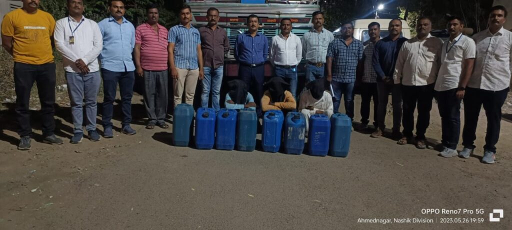 अहमदनगर प्रतिनिधी (दि.२७ मे):-जिल्ह्यात रात्रीचे वेळी पेट्रोल पंपावरील डिझेलची चोरी करणारी सराईत आंतरजिल्हा आरोपींची टोळी 15,26,320 रुपये किमतीच्या 280 लिटर डिझेल व ट्रकसह जेरबंद करण्यात स्थानिक गुन्हे शाखेला यश आले आहे. घटनेतील सविस्तर माहिती अशी की,फिर्यादी मनोज पितांबर झांबरे(वय 35 रा. संगमनेर) यांच्या मालकीच्या कासारे तालुका संगमनेर येथे साई बालाजी पेट्रोल पंपावरील नाईट ड्युटीवर असलेले कर्मचारी केबिनमध्ये झोपलेले असताना अनोळखी आरोपींनी फिर्यादीचे पेट्रोल पंपावरील 3,52,330 रुपये किमतीचे 3,780 लिटर डिझेल चोरी करून घेऊन गेले होते या घटनेबाबत फिर्यादी यांनी दिलेल्या तक्रारीवरून संगमनेर तालुका पोलीस स्टेशन येथे गुन्हा दाखल करण्यात आला होता.ही चोरीची घटना घडल्यानंतर जिल्हा पोलीस अधीक्षक राकेश ओला यांनी स्थानिक गुन्हे शाखेचे पोलीस निरीक्षक दिनेश आहेर यांना स्थानिक गुन्हे शाखेचे पोलीस अधिकारी व अंमलदार यांचे पथक नेमून गुन्ह्याचा तपास करून गुन्हा उघडकीस आणण्याबाबत आदेश दिले होते.पथकातील पोलीस अधिकारी व अंमलदार हे जामखेड,खर्डा व उस्मानाबाद परिसरात फिरून आरोपींची माहिती घेत असताना पोलीस निरीक्षक दिनेश आहेर यांना गुप्त बातमी दारा मार्फत माहिती मिळाली की ही ईसम नामे तानाजी काळे राहणार जोगेश्वर वस्ती (तालुका वाशी जिल्हा उस्मानाबाद) याने त्याच्या साथीदारासह कासारे तालुका संगमनेर येथील पेट्रोल पंपावरील चोरी केलेली डिझेल व वाहतुकीसाठी वापरलेली ट्रक त्याचे राहते घरासमोर लावलेले आहे आत्ता गेल्यास मिळून येईल अशी खात्रीशीर माहिती मिळाल्याने पोलीस निरीक्षक श्री.दिनेश आहेर यांनी प्राप्त माहिती पथकास करून पंचांना सोबत घेऊन खात्री करून कारवाई करणे बाबत आदेश दिले होते.पथक लागलीच नमूद ठिकाणी जाऊन आरोपीचे वास्तव्यावर माहिती घेऊन घराजवळ जाऊन खात्री केली असता एक विटकरी रंगाचा ट्रक लावलेली दिसला पथक व पंचांची खात्री होताच घरामध्ये हजर असलेल्या इसमास बाहेर बोलून पथकाची ओळख सांगून त्याचे नाव गाव विचारले असता त्याने त्याचे नाव तानाजी अशोक काळे (राहणार जोगेश्वर वस्ती तालुका वाशी,जिल्हा उस्मानाबाद)असे सांगितले त्याच्याकडे घरासमोर लावलेल्या ट्रक बाबत विचारपूस केले असता त्याने सदर ट्रक त्याचा मेहुना मुरलीधर शिंदे याचा असल्याचे सांगितले.सदर ट्रकची पंचां समक्ष झडती घेतली असता त्यामध्ये डिझेल ने भरलेले प्लास्टिकचे ड्रम मिळून आले त्याबाबत विचारपूस करता त्यांनी त्याचे इतर साथीदार नामे ज्ञानेश्वर विनायक शिंदे राहणार जोगेश्वरी वस्ती तालुका वाशी, जिल्हा उस्मानाबाद,पोपट व्यंकट पवार,अर्जुन व्यंकट पवार,आनंद पवार अशांनी मिळून संगमनेर तालुक्यात कसारा येथील पे