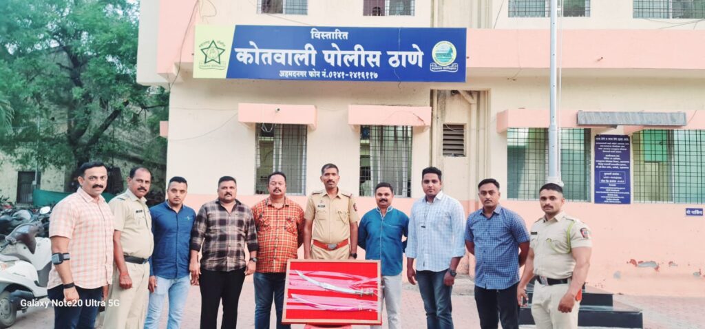 अहमदनगर प्रतिनिधी(दि.२८ मे):-शहरातील क्लेरा ब्रुस हायस्कुल मैदानावर अवैधरित्या तलवार बाळगणाऱ्या इसमास ताब्यात घेत कोतवाली पोलीसांनी गुन्हा दाखल केला आहे.ही घटना दि.२७ मे रोजी घडली आहे.याबाबत सविस्तर माहिती अशी की कोतवाली पोलीसांना गुप्त बातमीदारामार्फत बातमी मिळाली की,एक इसम हा अहमदनगर शहरातील क्लेरा ब्रुस हायस्कुल मैदानावर अवैधरित्या तलवार घेवून येणार आहे.आत्ता गेल्यास तो मिळून येईल अशी खात्रीलायक बातमी मिळाल्याने पोनि/चंद्रशेखर यादव यांनी कोतवाली पोलीस स्टेशनचे अधिकारी व अंमलदारांना सदर ठिकाणी जावून कारवाई करण्याचे आदेश दिल्याने पथकातील अधिकारी व अंमलदार यांनी सदर ठिकाणी जावून बातमीतील नमुद इसमास सापळा लावुन शिताफीने जागीच पकडुन त्यास त्याचे नाव गाव विचारले असता त्याने त्याचे नाव करण कृष्णा फसले (वय ३० वर्ष,रा. खिस्तगल्ली,अहमदनगर) असे सांगुन त्याचे कब्जात एक तलवार मिळून आली. कोतवाली पोलीस स्टेशनचे पोकॉ/कैलास दत्तु शिरसाठ यांचे फिर्यादीवरुन कोतवाली पोलीस स्टेशन गुन्हा रजिस्टर नं.५४३/२०२३ भारतीय हत्यार कायदा कलम ४/२५ प्रमाणे गुन्हा रजिस्टरी दाखल करण्यात आला असुन सदर गुन्हयाचा पुढील तपास पोना/योगेश खामकर हे करत आहेत.सदरची कारवाई ही पोलीस अधिक्षक राकेश ओला,अपर पोलीस अधिक्षक प्रशांत खैरे,उपविभागीय पोलीस अधिकारी अनिल कातकडे यांचे मार्गदर्शनाखाली पोलीस निरीक्षक/चंद्रशेखर यादव, पोसई/मनोज कचरे,पोलीस अंमलदार/तनवीर शेख,गणेश धोत्रे,योगेश भिंगारदिवे,अभय कदम,संदिप थोरात,अमोल गाढे,सुजय हिवाळे,सोमनाथ राऊत,कैलास शिरसाठ,सागर मिसाळ,अतुल काजळे यांच्या पथकाने केली आहे.