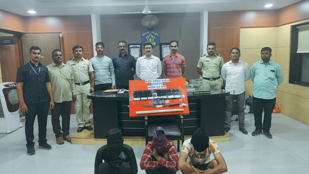 अहमदनगर प्रतिनिधी (दि.१ जुन):-सावेडी तपोवन रोड येथील भिस्तबाग महल परिसरात दरोड्याचे तयारीत असलेली औरंगाबाद येथील तीन सराईत आरोपींना ४,७८,२००/- रुपये किंमतीची स्विफ्ट कार,तेरा मोबाईल फोन,लोखंडी तलवार व लाकडी दाडंके अशा साधनासह जेरबंद करण्यात स्थानिक गुन्हे शाखेला यश आले आहे.बातमीची हकिगत जिल्हा पोलीस अधीक्षक श्री.राकेश ओला यांनी पोनि/श्री.दिनेश आहेर स्थानिक गुन्हे शाखा यांना जिह्यातील फरार व पाहिजे आरोपींची माहिती घेवून त्यांचे विरुद्ध कारवाई करणे बाबत यांना आदेश दिले होते.नमुद आदेशाप्रमाणे पोनि/श्री. दिनेश आहेर यांनी स्थानिक गुन्हे शाखेतील पोसई/तुषार धाकराव,पोहेकॉ/विजय वेठेकर,संदीप पवार,विजय ठोंबरे,विशाल गवांदे,संतोष लोढे,संदीप दरदंले,फुरकान शेख,पोकॉ/आकाश काळे व प्रशांत राठोड अशा पोलीस अधिकारी व अंमलदार यांचे पथक नेमुन कारवाई करणे बाबतचे सुचना दिल्या. नमुद सुचना प्रमाणे पथक अहमदनगर शहर व उपनगर परिसरात फिरून फरार व पाहिजे आरोपींचा शोध घेत असताना पोनि/श्री.दिनेश आहेर यांनी पथकास कळविले की,आताच गुप्तबातमीदारा मार्फत माहिती मिळाली की,५ ते ६ इसम लाल रंगाचे कारमध्ये दरोडा टाकण्याचे पुर्व तयारीने तपोवन रोड भिस्तबाग महला जवळ अंधारामध्ये दबा धरुन बसलेले आहेत आता गेल्यास मिळुन येईल अशी खात्रीशीर माहिती मिळाल्याने नमुद ठिकाणी जावुन खात्री करुन कारवाई करणे बाबत सुचना दिल्याने पथकाने तपोवन रोड भिस्तबाग महला जवळ जावुन खात्री केली असता थोडया अंतरावर अंधारामध्ये एक कार व कार जवळ दोन इसम उभे असलेले दिसले पथक कार जवळ जावुन संशयीत इसमांना पकडण्याचे तयारीत असताना कार जवळ उभे असलेले दोन इसमांना पथकाची चाहुल लागताच ते पळुन गेले व कारचे आत बसलेल्या इसमांना ताब्यात घेतले. ताब्यात घेतलेल्या इसमांना पोलीस पथकाची ओळख सांगुन त्यांचे नाव गांव विचारले असता त्यांनी त्यांची नावे १)संतोष अशोक कांबळे वय २४,रा.साठेनगर, वांळुज पंढरपुर,ता.गंगापुर, जिल्हा संभाजीनगर २)रविंद्र बापु चव्हाण वय २३,रा. कमलापुर रोड,वांळुज पंढरपुर,ता.गंगापुर,जिल्हा संभाजीनगर व ३)रवि आबासाहेब बोरुडे वय २३, रा.समता कॉलनी वांळुज पंढरपुर,ता.गंगापुर,जिल्हा संभाजीनगर असे असल्याचे सांगितले.संशयीत इसमांची पंचा समक्ष अंगझडती घेता त्यांचे अंगझडतीमध्ये एक तलवार,एक लाकडी दांडके, एक लाल रंगाची स्विफ्ट कार व तेरा मोबाईल फोन असा एकुण ४,७८,२००/- रु. किंमतीचा मुद्देमाल मिळुन आला त्याबाबत विचारपुस करता त्यांनी कोठे तरी दरोड्या सारखा गंभीर स्वरुपाचा गुन्हा करण्याचे उद्देशाने आल्याची कबुली दिल्याने आरोपींना सदर मुद्देमालासह ताब्यात घेतले. त्यांचेकडे पळुन गेलेल्या इसमांची नावे व पत्ता विचारले असता त्य