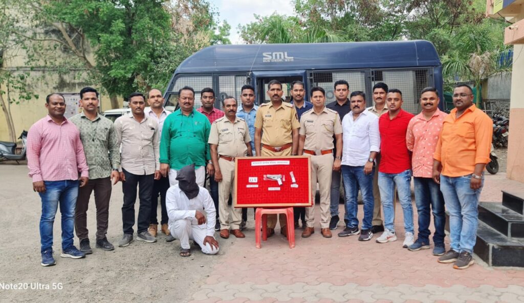 अहमदनगर प्रतिनिधी (दि.५ जुन):-दिनांक ०४ जुन रोजी रात्री कोतवाली पोलीसांना गुप्तबातमीदारा मार्फत माहिती मिळाली की,बुथ हॉस्पीटल परिसर, अहमदनगर येथे एका इसमाच्या कंबरेला गावटी पिस्तोल लावलेले असुन तो तेथे संशयितरित्या उभा आहे. आत्ता गेल्यास मिळुन येईल अशी खात्रीशिर माहिती मिळाल्याने पोनि/चंद्रशेखर यादव यांनी तात्काळ कोतवाली पोलीस स्टेशनचे गुन्हे शोध पथकाचे अधिकारी व अंमलदार यांना सदर ठिकाणी जावुन प्राप्त बातमी मिळाल्याप्रमाणे खात्री करुन कारवाई करणेस सांगीतल्याने सदर ठिकाणी जावून खात्री करता तेथे एक इसम हा बातमीतील हकीगती प्रमाणे संशयितरित्या फिरतांना दिसला.त्याची पोलीस अंमलदारांनी खात्री करुन त्यास सुरक्षितरित्या ताब्यात घेवुन त्याची अंगझडती घेतली असता त्याचे कंबरेला उजव्या बाजुला एक काळया रंगाचे लोखंडी अग्नीशस्त्र (गावठी पिस्तोल) व त्याचे मॅग्झीनमध्ये तीन जिवंत काडतुसे असे एकुन ३२,१००/-रु किंमतीचा मुददेमाल मिळुन आल्याने त्यास त्याचे नाव गाव विचारले असता त्याने त्याचे नांव दत्तात्रय शामराव काळे वय ४१ वर्षे रा.लोखंडी फॉलजवळ, लनेवासा ते श्रीरामपुर जाणारारोड, बेलपिंपळगांव ता.नेवासा जि. अहमदनगर) असे असल्याचे सांगीतल्याने त्याबाबत पोकॉ/ संदिप हेमंत थोरात यांच्या फिर्यादीवरुन सदर इसमाचे विरुध्द कोतवाली पोलीस स्टेशन गुन्हा रजि नंबर ५८६ / २०२३ शस्त्र अधिनियम ३/२५ प्रमाणे गुन्हा रजिस्टरी दाखल करण्यात आला असुन पुढील तपास पोनि/चंद्रशेखर यादव यांचे मार्गदर्शनाखाली पोसई गजेंद्र इंगळे हे करीत आहे.सदरची कारवाई ही पोलीस अधिक्षक राकेश ओला,अपर पोलीस अधिक्षक प्रशांत खैरे,उपविभागीय पोलीस अधिकारी अनिल कातकाडे,यांचे मार्गदर्शनाखाली पोलीस निरीक्षक/चंद्रशेखर यादव, पोसई/मनोज कचरे,पोसई/ गजेंद्र इंगळे,पोलीस/अंमलदार तनवीर शेख,गणेश धोत्रे, योगेश भिंगारदिवे,रियाज इनामदार,योगेश खामकर, सलीम शेख,अभय कदम, संदिप थोरात,अमोल गाढे, सुजय हिवाळे,कैलास शिरसाठ,सोमनाथ राऊत, सागर मिसाळ,अतुल काजळे, सतिष शिंदे यांनी केली आहे.
