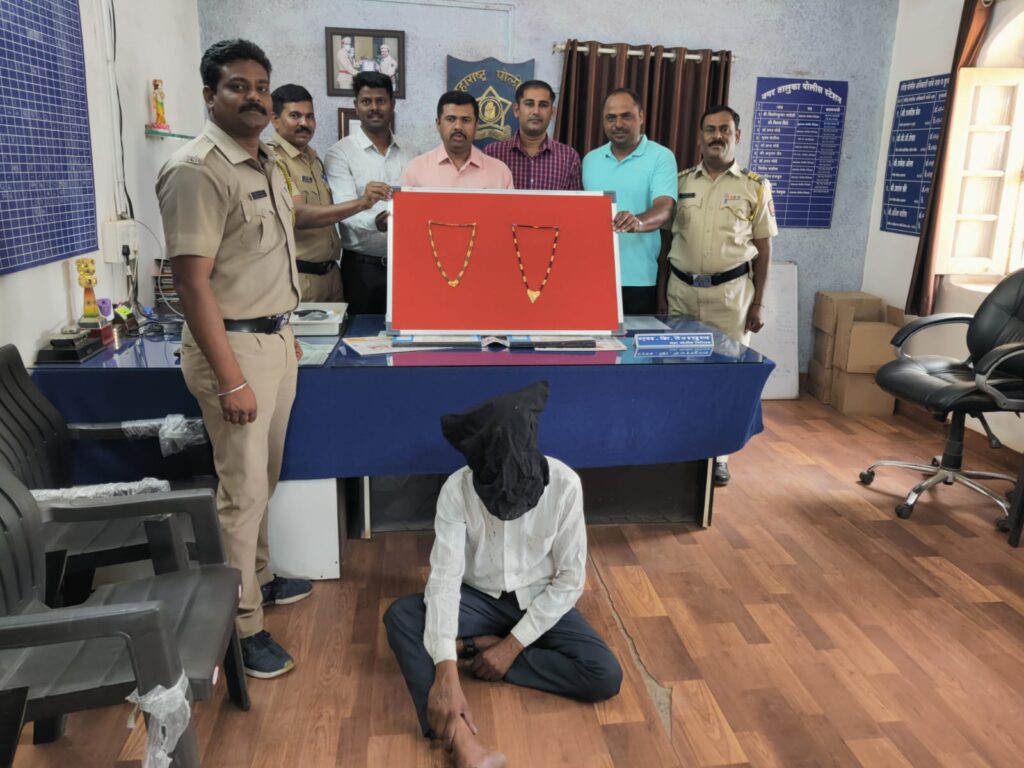 अहमदनगर प्रतिनिधी (दि.११ जुन):-पिक विम्याचे पैसे बॅकेतून काढून देतो म्हणून फसवणुक करुन सोने लंपास करणारा आरोपी अवघ्या चोवीस तासाच्या आत १,२०,०००/- रुपयेच्या सोन्याच्या मुद्देमालासह जेरबंद करण्यात नगर तालुका पोलीसांना यश आले आहे. बातमीतील हकीकत अशी की,दि.५ जुन रोजी सकाळी ०९.०० वा.सुमारास यातील फिर्यादी सौ.सुलोचना सुभाष कातोरे (वय ५० वर्षे रा. कामरगाव ता.जि.नगर) हे त्यांच्या माहेरी भाळवणी ता.जिल्हा अहमदनगर येथे कार्यक्रमासाठी जाण्यासाठी कामरगावतील बसस्टॅण्डवर थांबली होत्या तेंव्हा तेथे एक अनोळखी इसम निळया रंगाच्या गाडीवर आला व मला म्हणला की मला भाळवणी येथे जायचे आहे असे सांगून माझ्यासोबत दहा मिनीट गप्पा मारत बसला आणि थोडयावेळाने तो तेथून निघून गेला त्यानंतर मी माझ्या गळयाला हात लावला असता माझ्या गळयातील सोन्याचे मन्याचे गंठण मला दिसून आले नाही त्यानंतर माझी खात्री झाली की,सदर इसमाने मला बोलण्यामध्ये गुंतवुण माझ्या गळयातील १२ ग्राम वजनाचे सोन्याचे गंठन माझ्या सहमतीशिवाय चोरुन घेवून गेला आहे.अशी फिर्याद नगर तालुका पोस्टे गुरंन ४८१/२०२३ भादवीक ३७९ प्रमाणे दाखल होती.त्यानंतर दि.२/५/२०२३ रोजी १०/३० वा.सुमा फर्यादी सौ.लता सुर्यकांत कार्ले (वय ६५ रा.जखणगाव ता.जि.अहमदनगर) व त्यांची सवत विजाबाई असे नगरला नातेवाईकांच्या लग्नासाठी जाण्यासाठी जखणगाव बसस्टॅण्डवर थांबले असता एक इसम मोटार सायकलवर येऊन आंम्हाला म्हणला की, अहमदनगर येणारी बस आज येणार नाही मी पण नगरला चाललो आहे तुम्हाल मी नगरला सोडतो असे सांगितलेने आंम्ही त्याच्या मोटार सायकलवर बसलो आणि नेप्ती गावच्या शिवारात आल्यावर त्यांनी माझी सवत विजाबाई यांस गाडीवरुन खाली उतरवले आणि मला पुढे नेऊन सांगितले की,मी तुमच्या मुलाचा मित्र आहे तुमचे पिक विम्याचे पैसे बँकेत आलेले आहेत व त्यासाठी आधी तुम्हाला काही पैसे दयावे लागतात त्यावेळी मी त्याला म्हणाले की माझा जवळ आता पैसे नाहीत त्यावर त्यांनी मला सांगितले की,तुमच्या गळयाती गंठण मला दया मी ते बॅकेत गहाण ठेवून तुम्हाला पैसे काढून देतो असे म्हणाल्यावरुन मी त्याला माझ्या गळयातील १० ग्राम वजनाचे १२० सोन्याचे मणी असलेले गंठण त्याला काढून दिले परंतु तो परत आला नाही त्यामुळे त्यांनी माझी फसवणुक केली आहे अशा मजुकराची फिर्याद नगर ता.गुरंन ४८५/२०२३ भादवी कलम ४२० प्रमाणे गुन्हा दाखल करण्यात आला.त्या अनुशंगाने श्री.शिशिरकुमार देशमुख सहाय्यक पोलीस निरीक्षक,नगर तालुका पोलीस स्टेशन यांनी सदर गुन्हयाबाबत पोसई/रणजित मराग,पोसई/ युवराज चव्हाण,पोहेकॉ/नितीन शिंदे,मपोना/गायत्री धनवडे,पोकॉ/कमलेश पाथरुट,पोकॉ/संदीप जाधव,पोकॉ/बांगर व चापोहेकॉ/घोरपडे सर्व अशा पोलीस अध