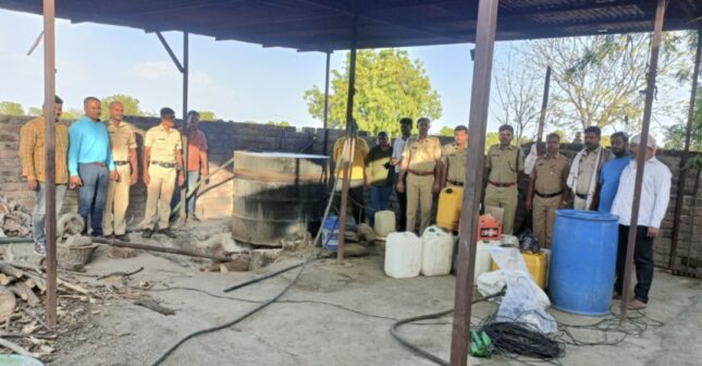 अहमदनगर प्रतिनिधी (दि.१३ जुन):-नगर तालुका पोलिसांनी नेप्ती,निमगाव वाघा,खंडाळा गावाच्या शिवारामध्ये एकाच दिवशी पाच ठिकाणच्या गावठी हातभट्टीवर धडक कारवाई करत एकुण 6,32,000/ रुपयांचा मुद्देमाल जागीच नाश केला आहे.घटनेतील हकीकत अशी की पोलीस अधीक्षक श्री.राकेश ओला यांनी श्री.शिशिरकुमार देशमुख सहायक पोलीस निरीक्षक नगर ता.पोस्टे यांना नगर तालुका पोलीस स्टेशन हद्दीमध्ये अवैध गावठी हातभट्टीवर कारवाई करण्यासाठी सहायक पोलीस अधीक्षक श्री.बी.चंद्रकांत रेड्डी यांना सोबत घेवून नगर तालुका पोलीस स्टेशन हद्दीमध्ये करावाई करुन गावठी हातभट्टी अड्डे उध्दवस्त करण्याचे आदेश दिले होते.त्यानुसार श्री.बी.चंद्रकांत रेड्डी सहायक पोलीस अधीक्षक यांच्या मार्गदर्शनाखाली श्री. शिशिरकुमार देशमखु,सहायक पोलीस निरीक्षक नगर तालुका पोलीस स्टेशन यांनी पोउनि/रणजित मारग, पोउनि/युवराज चव्हाण, पोहेकॉ/शैलेश सरोदे,पोना/सचिन वणवे,राहूल शिंदे,महेश भवर,मपोना/गायत्री धनवडे पोकॉ/कमलेश पाथरुट, संभाजी बारोडे,वैभव काळे,अनिल जाधव,मंगेश खरमाळे व चासफौ/पठाण यांचे अवैध गावठी हातभट्टी धंद्यावर कारवाई करणेकामी पथक तयार केले.त्यानुसार सदर पथकाने नेप्ती, निमगाव वाघा,खंडाळा गावच्या शिवारात जावून विविध पाच ठिकाणी गावठी हातभट्टीवर जावून मोठया प्रमाणात कच्चे रसायण,तयार गावठी हातभट्टी व गावठी हातभट्टी तयार करण्यसाठी लागणारे साहित्य असे एकुण 6,32,000/- मुद्देमाल जागीच नाश करण्यात आला.याबाबत नगर तालुका पोलीस स्टेशन येथे सदरबाबत वेगवेगळे गुन्हे दाखल करण्यात आले आहे.सदरची कारवाई श्री.राकेश ओला पोलीस अधीक्षक,श्री.प्रशांत खैरे अपर पोलीस अधीक्षक,उपविभागीय पोलीस अधिकारी श्री.संपतराव भोसले,श्री.बी.चंद्रकांत रेड्डी सहायक पोलीस अधीक्षक, नगर तालुका सपोनि/शिशिरकुमार देशमुख व नगर तालुका पोलिसांनी केली आहे.