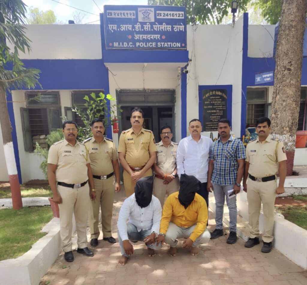 अहमदनगर प्रतिनिधी (दि.१३ जुन):-अपहरण करुन खंडणीची मागणी करणाऱ्या दोन सराईत आरोपींना अटक करण्यात एमआयडीसी पोलिसांना यश आले आहे. घटनेची सविस्तर माहिती अशी की,दि.13 जुन 2023 रोजी फिर्यादी नामे उमा रवि फुलपगार (वय 42 वर्ष,रा.सावेडी अहमदनगर) यांनी फिर्याद दिली की,दिर नामे मधुकर शांताराम फुलपगार यांना आरोपींनी पन्नास लाख रुपये द्या नाहीतर आम्ही जमीनीची खरेदी देणार नाहीत असे म्हणुन बळजबरीने गाडीमध्ये बसुन अपहरण केले होते त्याबाबत एमआयडीसी पोलीस स्टेशनला गुरजिनं 519/2023 भादविक 363,384,34 प्रमाणे दाखल झाला करण्यात आला होता.सदर गुन्हयाचा तपास करत असतांना सपोनि/राजेंद्र सानप प्रभारी अधिकारी एमआयडीसी पोलीस स्टेशन यांना गुप्त बातमीदारामार्फत बातमी मिळाली की,अपहरण झालेल्या व्यक्तीला आरोपी हे स्विप्ट गाडीमध्ये घेवुन दुध डेअरी चौकातुन शेंडी बायपास रोडने पिंपळगाव माळवी बाजुला जात आहेत.अशी माहिती मिळाल्याने लागलीच पोनि/सानप यांनी एमआयडीसी पोलीस स्टेशनचे पथक तयार करुन आरोपींवर कारवाई करून पकडण्यास सांगितले.पथकाने आरोपींचा पाठलाग करून दोघांना ताब्यात घेतले व त्यांना त्यांचे नाव गाव विचारले असता त्यांनी त्यांचे नाव 1)सखाराम नानासाहेब बरडे वय 35 वर्ष रा.वांबोरी ता. राहुरी,जि.अहमदनगर 2) पंकज नानासाहेब पाटील उर्फ बेडगे रा.चेतना कॉलनी,नवनागापुर ता.जि. अहमदनगर असे सांगीतले त्यांचा तिसरा साथीदार सुनिल आण्णासाहेब ढोकणे रा.उंबरे,ता.राहुरी.जि. अहमदनगर हा पळून गेला. वरील दोन आरोपींना शिताफिने पकडुन अपहरीत व्यक्ती नामे मधुकर शांताराम फुलपगार यांची सुटका करण्यात आली.सदरची कारवाई श्री.राकेश ओला पोलीस अधीक्षक,श्री. प्रशांत खैरे अपर पोलीस अधीक्षक,श्री.संपत भोसले उपविभागीय पोलीस अधिकारी नगर ग्रामीण विभाग यांच्या मार्गदर्शनाखाली सपोनि/ राजेंद्र सानप प्रभारी अधिकारी एमआयडीसी पोलीस स्टेशन,पोसई/दिपक पाठक,पोसई/राजेंद्र गायकवाड,पोना/विजय नवले,पोना/संदीप चव्हाण, पोना/मिसाळ,पोकॉ/किशोर जाधव,पोकॉ/सचिन हरदास पोकॉ/नवनाथ दहिफळे यांनी केली आहे.