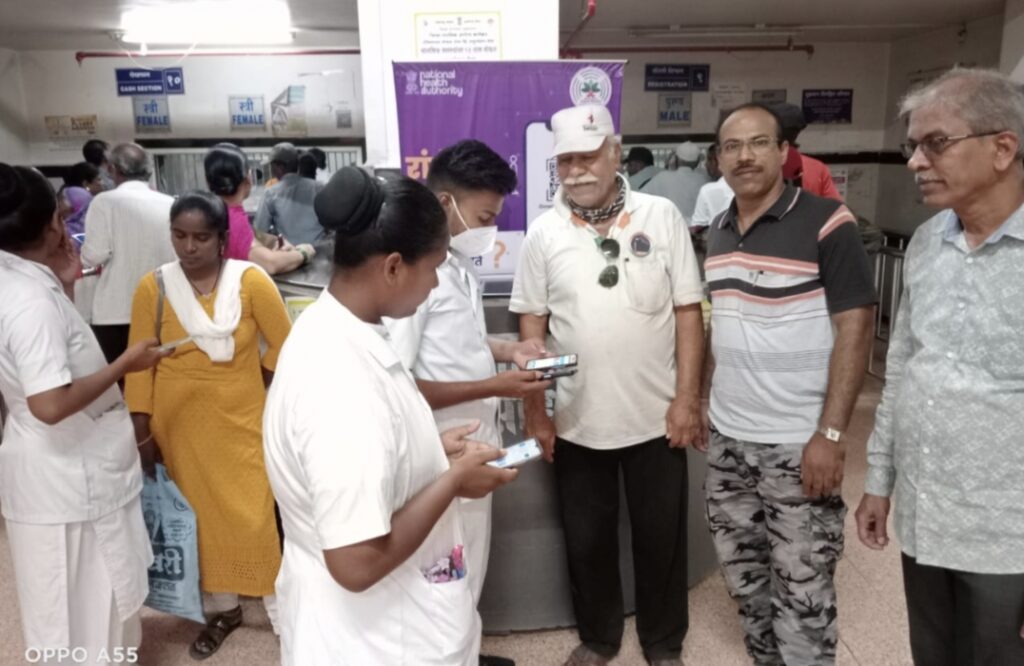 अहमदनगर प्रतिनिधी (दि.१५ जुन):-आयुष्यमान भारत डिजिटल मिशन अंतर्गत जिल्हा रुग्णालयात एक अभिनव उपक्रम घेण्यात आला.जिल्हा रुग्णालय येथे जिल्हा शल्यचिकित्सक डॉ.संजय घोगरे यांच्या मार्गदर्शनाखाली scan and share मोहीम राबविण्यात येत आहे.या मोहिमे मध्ये रुग्णांची केसपेपर साठी लागणारी रांग कमी करण्यासाठी टोकन पद्धतीने केस पेपर दिले जात आहेत.त्यामुळे जिल्ह्यातून येणाऱ्या रुग्णांच्या रांगा कमी तसेच वेळ पण वाचतोय त्यामुळे रुग्ण सुखावला आहे.यासाठी जिल्हारुग्णालय प्रशिक्षण केंद्रातील परिचारिका टोकन देऊन रुग्णाची एक प्रकारे सेवा करत आहे.तरी जिल्हा शल्यचिकित्सक यांनी रुग्णालयात येणाऱ्या रुग्णाने याचा फायदा करून घ्यावा असे आव्हान जिल्हा शासकीय रुग्णालयाच्या वतीने करण्यात आले आहे.या मोहिमेत अतिरिक्त जिल्हा शल्यचिकित्सक डॉ.डावरे,डॉ.सुचेता यादव,डॉ.मनोज घुगे आणि अधिसेविका छाया जाधव आणि ओपिडी विभाग कर्मचारी यांनी विशेष परिश्रम घेऊन ही मोहीम यशस्वी करून जिल्हा रुग्णालय डिजिटल करण्यात आले.