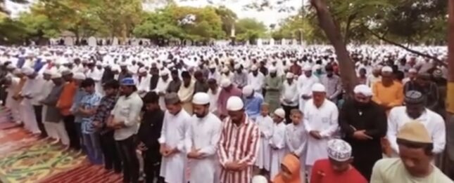 अहमदनगर प्रतिनिधी (दि.२९ जुन):-अहमदनगर शहरामध्ये आज मुस्लिम धर्मियांची ईद शांततेत पार पडली किंग्स गेट रोड परिसरातील ईदगाह मैदान याठिकाणी सकाळी साडे नऊ वाजता ईदच्या नमाज पठनाचे आयोजन करण्यात आले होते.अतिशय उस्फुर्त व आनंदमयी वातावरणात मुस्लिम समाज बांधव ईदगाह मैदान या ठिकाणी मोठ्या संख्येने नमाज पठणासाठी एकत्र जमले होते.नमाज पठणा नंतर बांधवांनी एकमेकांना ईदच्या शुभेच्छा दिल्या.कायदा व सुव्यवस्थेच्या दृष्टीकोनातून मोठा पोलीस बंदोबस्त ईदगाह मैदान येथे तैनात करण्यात आला होता.