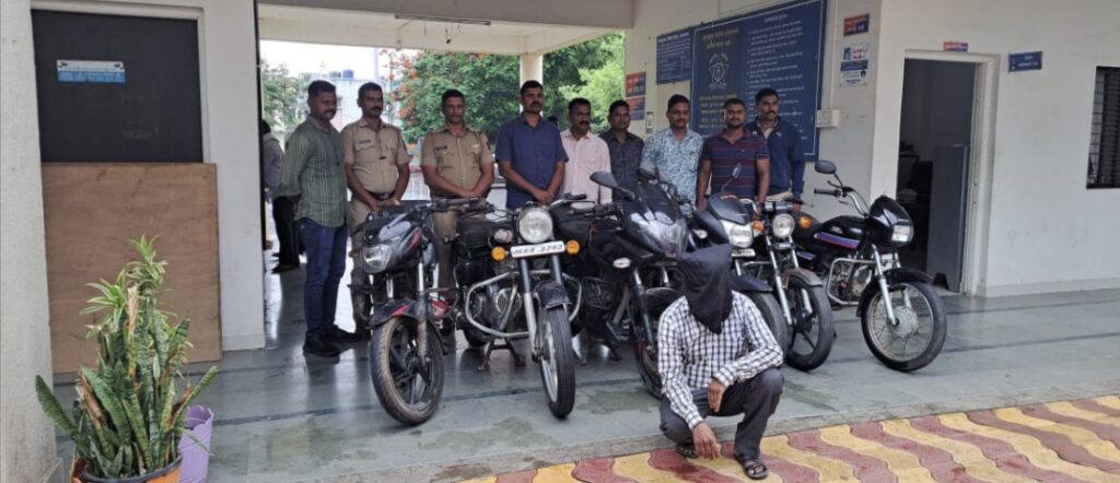 अहमदनगर प्रतिनिधी(दि.१३ जुलै):-अट्टल मोटर सायकल चोराला 2,55,000/-रु. किं.च्या मोटरसायकल सह पकडण्यात तोफखाना पोलिसांना यश आले आहे.तोफखाना पोलीस स्टेशन येथे गुरनं/979/2023 भादंविक 379 प्रमाणे दि.9 जुलै रोजी दाखल होता.यातील फिर्यादी यांची होंडा शाईन कंपनीची मोटार सायकल नं एमएच.16 ,बीएन.5875 हि दि.09 जुलै रोजी नगर मनमाड रोडवरील डि.मार्ट, समोरील रस्त्यावरुन कोणीतरी अज्ञात चोरट्याने चोरुन नेल्याबाबत पोस्टेला गुन्हा दाखल करण्यात आला होता.आरोपीचा शोध घेत असताना गुप्त तोफखाना पोलीस स्टेशन निरीक्षक मधुकर साळवे यांना गुप्त बातमीदारामार्फत बातमी मिळाली की,आरोपी नामे किशोर जयसिंग पठारे वय 40 वर्षे रा.पिंपळगांव माळवी ताजि.)अहमदनगर हा एक चोरीची मोटर सायकल घेवुन फिरत आहे.त्या अनुषंगाने पोलीस स्टेशनचे गुन्हे शोध पथकातील अधिकारी व पोलीस अंमलदार यांनी सापळा रचुन भिस्तबाग चौक या ठिकाणी सापळा रचत किशोर जयसिंग पठारे यास ताब्यात घेवून त्याच्या कडुन सहा मोटार सायकल जप्त केल्या.ही कारवाई जिल्हा पोलीस अधिक्षक श्री.राकेश ओला,अपर पोलीस अधिक्षक श्री.प्रशांत खैरे,उपविभागीय पोलीस अधिकारी नगर शहर विभाग श्री.अनिल कातकाडे यांचे सुचना व मार्गदर्शखाली पोलीस निरीक्षक मधुकर साळवे यांना मिळालेल्या गोपनिय माहितीच्या आधारे तोफखाना तपास पथकामधील सपोनि/नितिन रणदिवे,पोउपनिरी/समाधान सोळंके,पोहेकॉ/दत्तात्रय जपे, पोहेकॉ/सुनिल शिरसाठ,पोना/अविनाश वाकचौरे,पोना/वसिम पठाण, पोना/अहमद इनामदार,पोना/ सुरज वाबळे,पोना/संदिप धामणे,पोकॉ/सतिष त्रिभुवन, पोकॉ/शिरष तरटे,पोकॉ/सचिन जगताप,पोकॉ/गौतम सातपुते,पोकॉ/दत्तात्रय कोतकर,पोकॉ/सतिष भवर,पोकॉ/गौतम सातपुते,पोकॉ/ संदिप गि-हे यांनी केली आहे.सदर गुन्ह्याचा पुढील तपास सफो/अनिल भोसले हे करत आहेत.