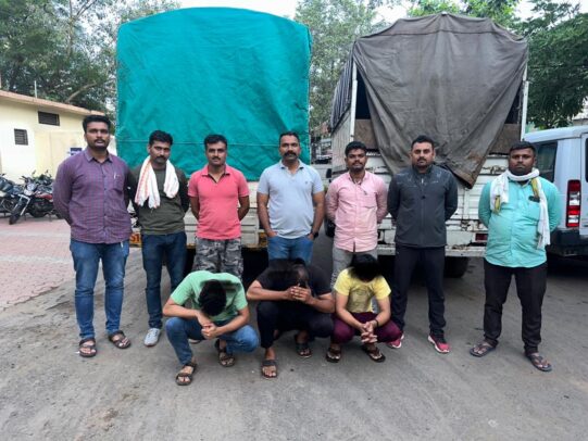 अहमदनगर प्रतिनिधी (दि.१५ जुलै):-नगर शहरातील व्यापारी मोहल्ला येथून महाराष्ट्र राज्यात बंदी असलेले गोवंशीय जातीचे तब्बल 1910 किलो गोमांस,11 जिवंत जनावरे असा मिळून 5 लाख 25 हजार रुपयांचा मुद्देमाल जप्त करण्यात स्थानिक गुन्हे शाखेला यश आले आहे.जिल्हा पोलीस अधीक्षक राकेश ओला यांनी पोनि/श्री.दिनेश आहेर, स्थानिक गुन्हे शाखा यांना जिल्ह्यातील अवैध धंद्याचे समुळ उच्चाटन करण्याच्या दृष्टीने माहिती घेवुन कायदेशीर कारवाई करणे बाबत आदेश दिले होते.दिलेल्या आदेशान्वये पोनि/श्री.दिनेश आहेर,यांनी दि.15 जुलै रोजी स्थानिक गुन्हे शाखेतील अधिकारी व कर्मचाऱ्यांना बोलावुन घेवुन कळविले की,आताच गुप्त बातमीद्वारामार्फत माहिती मिळाली की इसम नामे सोफीयान कुरेशी(रा.व्यापारी मोहल्ला अहमदनगर) हा एका पत्र्याच्या शेडमध्ये गोवंश जिवंत जनावरांना विना चारापाण्याचे डांबुन ठेवुन अमानुष वागणुक देवुन कत्तल करीत आहे.आता गेल्यास मिळुन येईल अशी खात्रीशीर माहिती मिळाल्याने पोनि/श्री. दिनेश आहेर यांनी स्थागुशा पथकास पंचाना सोबत घेवुन बातमीतील नमुद ठिकाणी जावुन खात्री करुन कारवाई करणे बाबत सुचना दिल्या व पथक तात्काळ रवाना केले.पथकाने बातमीतील नमुद ठिकाणी जावुन खात्री केली असता व्यापारी मोहल्ला येथे एका पत्र्याच्या शेडमध्ये काही इसम गोवंश जिवंत जनावरांची कत्तल करताना दिसले.पथकाची खात्री पटताच अचानक छापा टाकुन तीन इसमांना जागीच ताब्यात घेतले.व पोलीसाची ओळख सांगुन त्याचे नाव व गाव विचारले असता त्यांनी त्यांची नावे 1) मोहम्मद कैफ अब्दुल मस्जित कुरेशी वय 19, 2) अब्दुल आसीफ कुरेशी वय 19 व 3) शाहिद मुनाफ कुरेशी वय 21 सर्व रा. ब्यापारी मोहल्ला,अहमदनगर असे सांगितले.त्यांचे कडे सदर कत्तलखान्या व गोवंश जनावरे या बाबत विचारपुस करता त्यांनी सदर कत्तलखाना इसम नामे 4) सोफियान अय्याज कुरेशी रा. ब्यापारी मोहल्ला,अहमदनगर (फरार) याचे मालकीचा असुन तो चालवतो असे सांगितले.त्याचा शोध घेतला परंतु तो मिळुन आला नाही.ताब्यात घेतलेल्या आरोपींच्या कब्जातुन 3,82,000/- रुपये किंमतीचे 1,910 किलो गोमास,1,20,000/- अकरा (11) लहान मोठी जिवंत जनावरे व 500/- रुपये किंमतीचा सत्तुर व सुरा असा एकुण 5,02,500/- रुपये किंमतीचा मुद्देमाल जप्त करण्यात आला आहे.या बाबत पोकॉ/1699 शिवाजी अशोक ढाकणे ने.स्थानिक गुन्हे शाखा अहमदनगर याचे फिर्यादीवरुन कोतवाली पोलीस स्टेशन गु.र.नं. 776/2023 म.प.सु.अ.चे कलम 5 (क), 9 (अ) सह प्रा.नि.वा.क.3,11 प्रमाणे गुन्हा दाखल करण्यात आला आहे.सदरची कारवाई श्री. राकेश ओला पोलीस अधीक्षक,श्री.प्रशांत खैरे अपर पोलीस अधीक्षक,श्री.अनिल कातकाडे उपविभागीय पोलीस अधिकारी नगर शहर विभाग यांचे सुचना व मार्गदर्शना खाली स्थानिक गुन्हे शाखेचे पोसई/सोपान गोरे,पोना/स