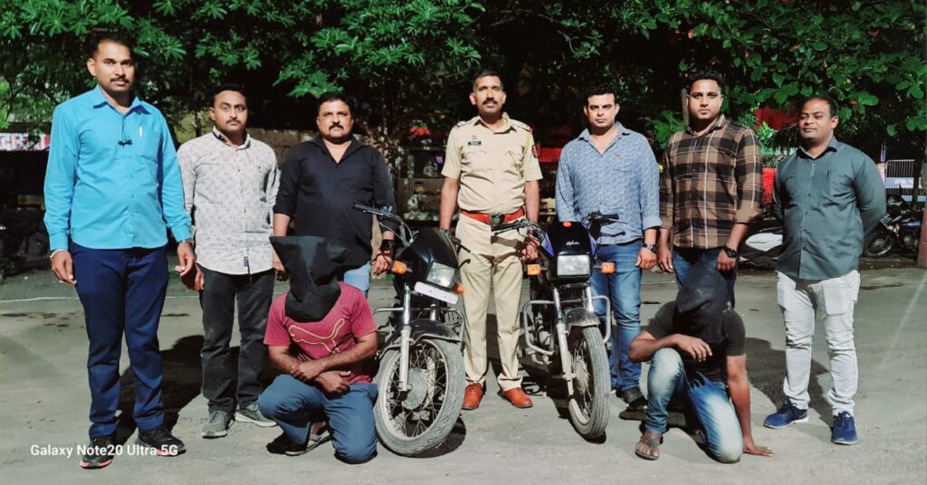 अहमदनगर(२ ऑगस्ट):-चोरीच्या गुन्ह्यातील मोटरसायकल विक्री करण्यासाठी आलेल्या दोन मोटरसायकल चोरांना विक्री करताना कोतवाली पोलिसांनी रंगेहाथ पकडले आहे.शहरातील चाणक्य चौक व कोठी रस्त्यावरून दोन जणांना कोतवाली पोलिसांनी ताब्यात घेतले असून ६० हजार रुपये किमतीच्या दोन मोटरसायकल जप्त करण्यात आल्या आहेत.कोतवाली पोलीस ठाण्याच्या हद्दीतील चाणक्य चौकात व कोठी रस्त्यावर दोन इसम रविवारी (ता.३०) रोजी चोरीतील मोटरसायकल विक्री करण्यासाठी येत असल्याची माहिती पोलीस निरीक्षक चंद्रशेखर यादव यांना मिळाली होती.या माहितीच्या आधारे गुन्हे शोध पथकाला पोलीस निरीक्षक यादव यांनी कारवाईच्या सूचना दिल्या. पोलीस अंमलदारांनी सापळा लावून चाणक्य चौकात चोरीची स्पेलंडर प्रो मोटारसायकल विक्रीसाठी आलेल्या वैभव सुरेश पठाडे (वय २६ वर्षे रा.आव्हाण खुर्द ता.शेवगांव जि.अहमदनगर) याला ताब्यात घेतले.तसेच कोठी रस्त्यावरून गणेश ढोल्या चव्हाण (वय ३८ वर्ष, रा.दुधसागर सोसायटी केडगाव,अहमदनगर) याला चोरीतील हिरो होंडा स्प्लेंडर मोटारसायकलसह ताब्यात घेतले.प्रत्येकी तीस हजार रुपये किमतीच्या दोन मोटरसायकल जप्त करण्यात आले असून,दोघांविरुद्ध मपोका कलम १२४ प्रमाणे गुन्हा दाखल करण्यात आला आहे.आरोपी वैभव पठाडे याच्यावर कोतवाली तोफखाना आणि शेवगाव पोलीस स्टेशन येथे मोटरसायकल चोरीचे सात गुन्हे दाखल आहेत तर गणेश चव्हाण याच्यावर कोतवाली पोलीस स्टेशन येथे मारामारीचा एक गुन्हा दाखल आहे.पोलीस अधिक्षक राकेश ओला,अपर पोलीस अधिक्षक प्रशांत खैरे,उपविभागीय पोलीस अधिकारी अनिल कातकाडे यांच्या मार्गदर्शनाखाली पोलीस निरीक्षक/चंद्रशेखर यादव,पोहेकॉ/गणेश धोत्रे, पोना/योगेश भिंगारदिवे,पोना/ एपी.इनामदार,पोकॉ/संदिप थोरात,पोकॉ/अमोल गाडे यांनी ही कारवाई केली.