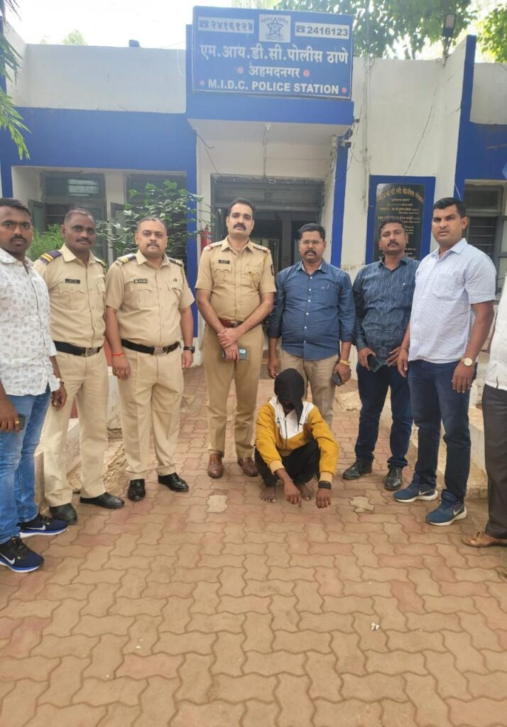 नगर प्रतिनिधी (दि.९ ऑगस्ट):-एमआयडीसी परीसरात कोयत्याचा धाक दाखवुन जबरी चोरी करणाऱ्या सराईत आरोपीला पकडण्यात एमआयडीसी पोलीसांना यश आले आहे. बातमीची हकीकत अशी की,दि.२९/०५/२०२३ रोजी यातील फिर्यादी नितीन सुधाकर गायकवाड (वय ३४ वर्ष,धंदा पानस्टॉल चेतना कॉलनी नवनागापुर) यांनी पोलीस ठाण्यात फिर्याद दिली की,दिनांक २९/०५/२०२३ रोजी साई पान स्टॉल चेतना कॉलनी अहमदनगर मनमाड रोडवर पान विक्री करत असतांना दोन आरोपी यांनी हातात कोयता व गुप्ती घेवुन त्याचा धाक दाखवुन फिर्यादीचे पान स्टॉलच्या गल्यातील दोन हजार रुपये बळजबरीने काढुन चोरुन नेले फिर्यादीवरुन एमआयडीसी पोस्टे गुन्हा रजि.नंबर ४७८/२०२३ भादवि ३९२, ३४ प्रमाणे गुन्हा दाखल करण्यात आला होता.सदर गुन्हयाचा समांतर तपास करत असतांना सपोनि/राजेंद्र सानप यांना गोपनिय माहिती मिळाली की,सदरचा गुन्हा हा सराईत आरोपी नामे १) शुभम उर्फ छब्या रविंद्र गायकवाड रा.फोर्जिंग कॉलनी वडगाव गुप्ता शिवार ता.जि. अहमदनगर २)विश्वास गायकवाड रा.एमआयडीसी अहमदनगर यांनी केला आहे.त्यानुसार सपोनि/राजेंद्र सानप यांनी एमआयडीसी पोलीस स्टेशनचे एक पथक तयार करुन गोपनिय माहितीच्या आधारे आरोपी नामे विश्वास नामदेव गायकवाड रा.श्री स्टाईल चौक एमआयडीसी अहमदनगर यास शिताफीने पकडले.त्याचेकडे विचारपुस केली असता त्याने सदर गुन्हा केल्याचे कबुल केले.आरोपी विश्वास नामदेव गायकवाड याचेवर गंभीर स्वरूपाचे असे पाच गुन्हे दाखल आहेत.ही कारवाई श्री.राकेश ओला पोलीस अधीक्षक,श्री.प्रशांत खैरे अपर पोलीस अधीक्षक,श्री.संपत भोसले उपविभागीय पोलीस अधिकारी नगर ग्रामीण विभाग यांचे मार्गदर्शनाखाली सपोनि/राजेंद्र सानप एमआयडीसी पोलीस स्टेशन,पोसई/योगेश चाहेर पोसई/पोना/संदीप चव्हाण,पोना/राजु सुद्रीक,पोना/नेहुल,पोना/विशाल थोरात,पोना/भागवत,पोकॉ/सचिन हरदास,पोकॉ/किशोर जाधव,पोकॉ/उमेश शेरकर यांनी केली आहे.