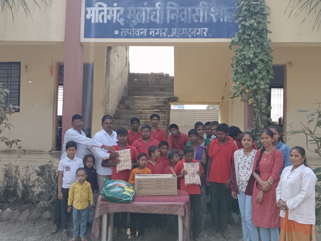 अहमदनगर (प्रतिनिधी)- शंभूराजे प्रतिष्ठानच्या वतीने तपोवन रोड येथील मतीमंद मुलांच्या निवासी शाळेत दि.१७ डिसेंबर रोजी अन्न-धान्याची मदत करण्यात आली व मुलांना खाऊचे वाटप करण्यात आले. प्रगतशील शेतकरी कै.शंकर भाऊ वाणी यांच्या स्मृतीप्रित्यर्थ हा सामाजिक उपक्रम राबविण्यात आला.या कार्यक्रमाप्रसंगी उद्योजक संतोष वाणी, उद्योजक गणेश वाणी,किरण लुंगसे,धनंजय तागड, कुंडलिकराव ढवण,प्रशांत शिंदे,अमर निक्रड,चैतन्य वाणी,ओम वाणी,तेजश्री निक्रड,गायत्री वाणी,पूजा वाणी आदींसह वाणी परिवारातील सर्व सदस्य व शंभूराजे प्रतिष्ठानचे कार्यकर्ते उपस्थित होते.यावेळी गणेश वाणी म्हणाले की,वाढदिवस,सण,उत्सव व इतर धार्मिक कार्यक्रमांना सामाजिक उपक्रमाची जोड दिल्यास वंचितांना आधार मिळणार आहे.वंचित व दुर्बल घटकांना प्रगतशील शेतकरी कै.शंकर वाणी यांनी नेहमीच आधार देण्याचे कार्य केले होते.त्यांच्या विचारांचा वारसा वाणी परिवार व शंभूराजे प्रतिष्ठान सामाजिक योगदानाने चालवत असल्याचे त्यांनी स्पष्ट केले.तसेच संतोष वाणी म्हणाले की,प्रत्येकाने सामाजिक जाणीव ठेऊन योगदान देण्याची गरज आहे. दीनदुबळ्यांना आधार दिल्यास समाजातील प्रश्न सुटण्यास मदत होणार आहे. वडिलांनी देखील गरजूंना मदत करण्याची नेहमीच शिकवण दिली.खर्या गरजूंना मदत मिळाल्यास ती मदत सार्थकी लागते.ही जाणीव ठेऊन हा उपक्रम राबविण्यात आला असल्याचे त्यांनी सांगितले.