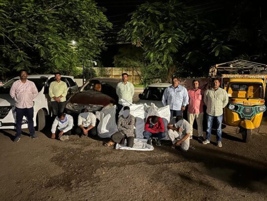 अहमदनगर (दि.१९ ऑगस्ट):-राहता तालुक्यातील राहता ते साकुरी रोडवर गुटखा,पानमसाला व सुगंधी तंबाखु वाहतुक करणा-या आरोपी विरुध्द स्थानिक गुन्हे शाखेच्या पथकाने नुकतीच कारवाई केली आहे.महाराष्ट्र राज्यात विक्रीस प्रतिबंधीत असलेला गुटखा व पानमसाला विरुध्द स्थानिक गुन्हे शाखेचे पथक कारवाई करत असताना पोनि/श्री.दिनेश आहेर यांना गुप्तबातमीदारा मार्फत माहिती मिळाली की,इसम नामे कलीम शहा हा त्याचे हस्तकामार्फत गुटखा, पानमसाला व तंबाखुची राहाता ते साकुरी रोडवरील पेट्रोलपंपा जवळ विक्री करीता घेवून येणार आहे. आता गेल्यास मिळुन येईल अशी खात्रीशीर माहिती मिळाल्याने पोनिश्री.आहेर यांनी प्राप्त माहिती पथकास कळवुन,पंचाना सोबत घेवुन खात्री करून कारवाई करणे बाबत सुचना दिल्या.पथकाने बातमीतील नमुद ठिकाणी राहाता ते साकुरी रोडवरील पेट्रोलपंपा जवळ जावुन पाहणी करता काही इसम एका मालवाहु पॅगो रिक्षामधुन दोन इनोव्हा कार व एक स्विफ्ट डिझायर कारमध्ये गोण्या भरताना दिसले पथकाची खात्री होताच अचानक छापा घालुन आरोपी नामे १ )कलीम रहिम शहा वय ३२,रा.नांदुर्खी,ता. राहाता, २)अलीम रहिम शहा वय २९,रा.श्रीरामनगर,शिर्डी,ता.राहाता, ३)अरबाज अजीज शेख वय २३,रा. नांदुर्खी,ता.राहाता, ४) राजु हबीब शेख वय ३५,रा.श्रीरामनगर,शिर्डी,ता.राहाता, ५)अल्ताफ अब्दुल बागवान वय ३६,रा.दत्तनगर,ता. कोपरगांव अशा ५ आरोपींना मालासह ताब्यात घेतले.ताब्यात घेतलेल्या आरोपींना त्यांनी सदर माल कोठुन आणला या बाबत विचारपुस करता आरोपींनी ६) अभय गुप्ता,रा.इंदौर,राज्य मध्यप्रदेश ( फरार) व ७) प्रमोद बोथरा,रा.कोपरगांव (फरार) यांचे कडुन आणले बाबत माहिती दिल्याने आरोपींना महाराष्ट्र राज्यात विक्री व वाहतुकीस प्रतिबंधीत असलेला गुटखा,पानमसाला व तंबाखुजन्य पदार्थ,२ इनोव्हा,१ स्विफ्ट डिझायर,१ मालवाहु पॅगो,१ ओप्पो मोबाईल असा एकुण ३८,७३,६६६/- किंमतीचे मुद्देमालासह ताब्यात घेवुन राहाता पो.स्टे.गु.र.नं. ४२२/२३ भादविक ३२८, १८८, ७२,२७३,३४ प्रमाणे गुन्हा दाखल करण्यात आला आहे.पुढील तपास राहाता पो.स्टे.करीत आहे.ही कारवाई श्री.राकेश ओला पोलीस अधीक्षक,श्रीमती.स्वाती भोर मॅडम अपर पोलीस अधिक्षक श्रीरामपूर,श्री. संदीप मिटके उपविभागीय पोलीस अधिकारी,शिर्डी विभाग यांचे सुचना व मार्गदर्शनाखाली स्थानिक गुन्हे शाखेचे यांनी स्थानिक गुन्हे शाखेतील सफौ/ भाऊसाहेब काळे,पोहेकॉ/मनोहर गोसावी,पोना/विजय ठोंबरे,गणेश भिंगारदे,पोकॉ/रणजीत जाधव,रोहित मिसाळ व शिवाजी ढाकणे यांनी केलेली आहे.