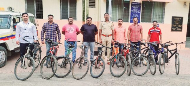 अहमदनगर(दि.२० ऑगस्ट):-शहरातील विविध ठिकाणावरून सायकली चोरी करणाऱ्या अट्टल चोराला कोतवाली पोलिसांनी जेरबंद केले आहे.चोरीला गेलेल्या ५५ हजार रुपये किमतीच्या ११ सायकली कोतवाली पोलिसांनी जप्त केल्या असून,दिनेश शेषराव व्यवहारे (वय ५० वर्षे,रा.दातरंगेमळा, अहमदनगर) या आरोपीवर गुन्हा दाखल झाला आहे. कोतवाली पोलिसांनी हस्तगत केलेल्या सायकली ज्या नागरिकांच्या असतील त्यांनी ओळख पटवून पोलीस ठाण्यातून घेऊन जाण्याचे आवाहन पोलीस निरीक्षक चंद्रशेखर यादव यांनी केले आहे.टेलर काम करणाऱ्या अजय काजी मोरे (वय ५४ वर्षे,रा.बागडे मळा, बालीकाश्रमरोड,अहमदनगर) यांची सायकल सांगळे गल्ली येथून दि.१२ ऑगस्ट रोजी चोरीला गेली होती.कोतवाली पोलीस ठाण्यात चोरीचा गुन्हा दाखल करण्यात आला होता. या गुन्ह्याचा तपास सुरू असताना कोतवाली पोलिसांना माहिती मिळाली की शहरातील विविध ठिकाणावरून दिनेश व्यवहारे याने सायकली चोरी केल्या असून,तो सायकल विक्री करण्या करिता गाडगीळ पटांगणात येणार आहे.या माहितीच्या आधारे कोतवाली पोलिसांनी आरोपीला पकडण्यासाठी गाडगीळ पटांगण परिसरात सापळा लावला होता.आरोपी दिनेश व्यवहारे चोरीची सायकल विक्री करण्यासाठी आला असता त्याला कोतवाली पोलिसांनी पकडले.आरोपीची कसून चौकशी केली असता शहरातील विविध ठिकाणांवरून ११ सायकली चोरल्याची कबुली त्याने दिली.गुन्ह्याचा अधिक तपास पोलीस निरीक्षक चंद्रशेखर यादव यांच्या मार्गदर्शनाखाली पोना/मुकुंद दुधाळ करत आहेत.पोलीस अधीक्षक राकेश ओला,अपर पोलीस अधिक्षक प्रशांत खैरे, उपविभागीय पोलीस अधिकारी अनिल कातकाडे यांच्या मार्गदर्शनाखाली पोलीस निरीक्षक चंद्रशेखर यादव,पोलीस अंमलदार तनवीर शेख,गणेश धोत्रे, योगेश भिंगारदिवे,सलीम शेख,रियाज इनामदार,अभय कदम,संदिप थोरात,अमोल गाढे,कैलास शिरसाठ,सागर मिसाळ,सोमनाथ राऊत, सुजय हिवाळे,अतुल काजळे यांच्या पथकाने ही कारवाई केली.