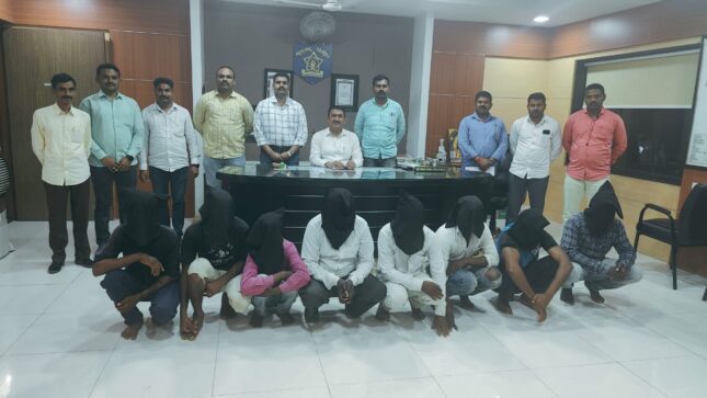 अहमदनगर (दि.२१ ऑगस्ट):-नेवासा तालुक्यातील वडाळा बहिरोबा येथील डाळींबाच्या बागेत घुसून शेतक-यास मारहाण करुन डाळींबाची चोरी करणा-या ९ आरोपींची टोळी जेरबंद करण्यात स्थानिक गुन्हे शाखेच्या पथकाला यश आले आहे.प्रस्तुत बातमीची हकिगत अशी की,यातील फिर्यादी श्री. बाबासाहेब सुधाकर मोटे (रा. वडाळा बहिरोबा,ता.नेवासा) यांचे व त्यांचे शेजारील शेतक-याचे शेतातील ३,४०,०००/- रुपये किंमतीचे परिपक्व १५० कॅरेट डाळींब अनोळखी आरोपींनी शेतक-यास मारहाण करुन चोरुन नेले होते.या घटने बाबत शनिशिंगणापुर पोलीस स्टेशन येथे गु.र.नं.९६३ / २०२३ भादविक ३७९ प्रमाणे चोरीचा गुन्हा दाखल करण्यात आला होता.गुन्ह्याचे तपासात शेतक-यास ७ ते ८ आरोपींनी मारहाण करुन डाळींबाची चोरी केल्याचे निष्पन्न झाल्याने पोलीस अधीक्षक राकेश ओला यांचे मार्गदर्शना प्रमाणे सदर गुन्ह्यास भादविक ३९५ हे दरोड्याचे वाढीव कलम लावण्यात आले होते.श्री. राकेश ओला पोलीस अधीक्षक अहमदनगर यांनी पोनि/श्री.दिनेश आहेर स्थानिक गुन्हे शाखा अहमदनगर यांना स्थागुशाचे पथक नेमुन गुन्ह्याचा समांतर तपास करुन गुन्ह्यातील आरोपी निष्पन्न करुन गुन्हा उघडकिस आणणे बाबत आदेशित केले होते.नमुद आदेशान्वये पोनि/श्री. दिनेश आहेर यांनी स्थानिक गुन्हे शाखेतील पोलीस अधिकारी व अंमलदार यांचे पथक नेमुन आरोपींचा शोध घेवुन कारवाई करणे बाबत सुचना दिल्याने पथक नेवासा परिसरात पेट्रोलिंग फिरुन आरोपींची माहिती घेताना पोनि/दिनेश आहेर यांना गुप्तबातमीदारा मार्फत माहिती मिळाली की,वर नमुद गुन्हा हा इसम नामे साईनाथ आहिरे रा.कोरगांव, ता.नेवासा व नवनाथ गवळी रा.आंतरवली,ता.नेवासा यांनी त्यांचे साथीदारासह केला असुन ते कोरगांव शिवार,ता. नेवासा येथे आले आहेत.आता गेल्यास मिळुन येतील अशी खात्रीशीर माहिती मिळाल्याने पोनि/श्री.आहेर यांनी प्राप्त माहिती पथकास कळवुन, पंचाना सोबत घेवुन खात्री करुन कारवाई करणे बाबत मार्गदर्शन केले.पथकाने नमुद ठिकाणी जावुन संशयीचे वास्तव्याबाबत माहिती घेता ते मिळुन आल्याने त्यांना शिताफीने ताब्यात घेवून पोलीस पथकाची ओळख सांगुन त्यांचे नाव गांव विचारले असता त्यांनी त्यांचे नाव गांव विचारता त्यांनी त्यांची नावे १) साईनाथ बाबुराव आहिरे रा.कोरगांव, ता.नेवासा व २) नवनाथ सोमनाथ गवळी रा. आंतरवली,ता.नेवासा असे सांगितले.त्यांचे कडे वर नमुद गुन्ह्याचे अनुषंगाने विचारपुस करता त्यांनी सदरचा गुन्हा त्यांचे इतर साथीदार नामे ३)अक्षय दिलीप आहेर ४)लालु बाबुराव आहिरे ५) वाल्मिक बबन आहिरे वय अ.क्र. ३ ते ५ रा. चितळी,ता.पाथर्डी,६) नानासाहेब चांगदेव बर्डे७) प्रल्हाद शंकर पवार ८) विठ्ठल सोपान बर्डे अ.क्र. ६ ते ८ रा. कोरगांव,ता.नेवासा,९) आकाश पोपट माळी (फ