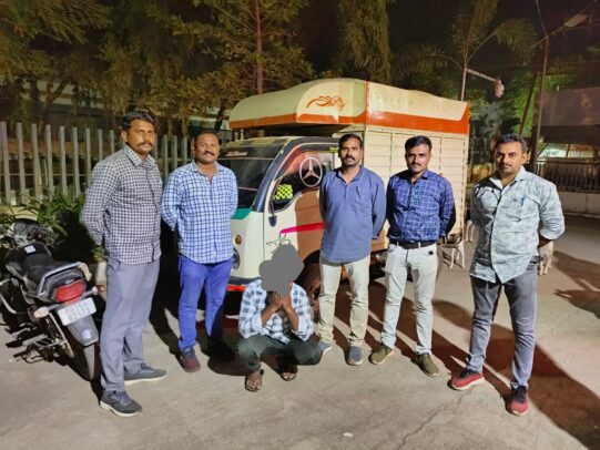 प्रतिनिधी (दि.२२ ऑगस्ट):-संगमनेर तालुक्यातील जमजम कॉलनी येथे छापा टाकुन महाराष्ट्र राज्यात बंदी असलेले गोवंशीय जातीचे गोमास,साधने व टेम्पो स्थानिक गुन्हे शाखेने जप्त केला आहे.जिल्हा पोलीस अधीक्षक राकेश ओला यांनी पोनि/श्री.दिनेश आहेर स्थानिक गुन्हे शाखा यांना महाराष्ट्र राज्यात बंदी असलेले गोवंशीय जनावरांची हत्या करुन गोमास विक्री करणा-या इसमांची माहिती घेवुन कारवाई करणे बाबत आदेश दिले होते.स्थानिक गुन्हे शाखेचे पोनि/दिनेश आहेर यांनी स्थानिक गुन्हे शाखेतील अमलदारांना कळविले आताच गुप्तबातमीदारा मार्फत माहिती मिळाली की, इसम नामे अब्दुल कुरेशी रा.जुना जोर्वे रोड,संगमनेर हा महाराष्ट्र राज्यात गोवंशी जनावरांची कत्तल करुन,गोमास एका छोटा हत्ती टेम्पोत भरत आहे.आता गेल्यास मिळुन येईल अशी खात्रीशीर माहिती स्थागुशा पथकास कळवून नमुद ठिकाणी जावुन खात्री करून कारवाई करणे बाबत आदेशित केले.पथकातील पोलीस अधिकारी व अंमलदार यांनी वरील प्राप्त माहिती प्रमाणे खात्री करुन जुना जोर्वे रोड,जमजम कॉलनी,संगमनेर परिसरात ठिकाणी कारवाई करुन ६०० किलो गोमास व तुकडे,एक सत्तुर,एक सुरा व एक छोटा हत्ती टेम्पो असा एकुण ४,२०,००० /- रुपये किंमतीचा मुद्देमाल जप्त करुन संगमनेर शहर पोलीस स्टेशन येथे अब्दुल हमिद अहमद कुरेशी,महंमद समशाद आलम शेख (फरार ) दोन्ही रा.जमजम कॉलनी या दोन आरोपी विरुध्द गुन्हा दाखल करण्यात आला.सदरची कारवाई राकेश ओला पोलीस अधीक्षक,श्रीमती.स्वाती भोर मॅडम अपर पोलीस अधीक्षक श्रीरामपूर व श्री. सोमनाथ वाघचौरे उपविभागीय पोलीस अधिकारी संगमनेर विभाग यांचे सुचना व मार्गदर्शना खाली स्थानिक गुन्हे शाखेचे पोहेकॉ/दत्तात्रय गव्हाणे,पोना/सचिन आडबल,संतोष लोढे,गणेश भिंगारदे,पोकॉ/बाळासाहेब गुंजाळ,अमृत आढाव यांनी केलेली आहे.