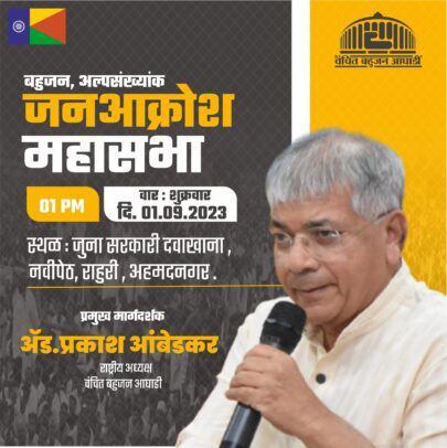 अहमदनगर (दि.३० ऑगस्ट):-दलित,मुस्लिम,ओबीसी,आदिवासी,भटके विमुक्त आणि इतर अल्पसंख्यांक समूहावर होणाऱ्या अन्याय अत्याचाराच्या विरोधात वंचित बहुजन आघाडीची शुक्रवारी ०१ सप्टेंबर २०२३ रोजी दुपारी १:०० वाजता राहुरी शहरात जुना सरकारी दवाखाना,नवीपेठ,येथे ‘बहुजन अल्पसंख्यांक जनआक्रोश सभा’ ॲड.प्रकाश आंबेडकर राष्ट्रीय अध्यक्ष,वंचित बहुजन आघाडी यांच्या प्रमुख मार्गदर्शनाखाली होत आहे.