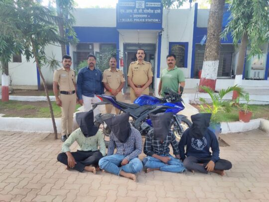 सदरचा गुन्हा हा सराईत आरोपी नामे १)नागेश संजय चव्हाण रा.मोबीन आखाडा राहुरी जि.अहमदनगर २) अक्षय उत्तम माळी रा. झोपडपटटी राहुरी ३)संकेत उर्फ सनी सोपान बड़े रा. झोपडपटटी राहूरी जि. अहमदनगर ४) किरण उर्फ हुंगा राजेंद्र जगधने रा.झोपडपटटी राहुरी यांनी केला असुन ते राहुरी येथे असल्याची माहिती मिळाली. त्यानुसार सपोनि/राजेंद्र सानप यांनी एमआयडीसी पोलीस स्टेशनचे एक पथक तयार करुन त्यांना राहुरी येथे पाठविले.या पोलीस पथकांनी राहुरी येथुन सदर आरोपींना सापळा रचुन शिताफिने ताब्यात घेतले.आरोपीनी गुन्हयाची कबुली दिली असुन त्यांचे कडुन सदर गुन्हयात चोरी गेलेली एक लाख रु. किमतीची एमहा कंपनीची आर १५ मोटारसायकल व १०,०००/- रु.किमतीचा वन प्लस कंपनीचा मोबाईल असा एकुण १,१०,००० रु. किमतीचा मुददेमाल जप्त करण्यात आला आहे.सदरचे आरोपी हे सराईत असुन त्यांचेवर राहुरी व एमआयडीसी पोलीस ठाण्यात गुन्हे दाखल आहेत.