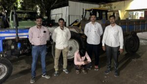 याबाबत ट्रॅक्टर चालक तुषार रोकडे यांच्याकडे विचारपूस केली असता त्याने गणेश काटे व विकी सरोदे (दोघे रा. कोपरगांव) यांच्या सांगण्यावरून गोदावरी नदीपात्रातून उत्खनन करुन वाळू आणलेली असून ते दोघे वाळू धंद्यामध्ये पार्टनर असल्याचे सांगितले.पथकाने ट्रॅक्टरसह पाच लाख दहा हजार रुपये किमतीचा जप्तके ला.या प्रकरणी तिघांविरुद्ध कोपरगाव पोलीस ठाण्यात भादंवि कलम ३७९,३४ सह पर्यावरण कायदा कलम ३/१५ अन्वये गुन्हा दाखल करण्यात आला आहे.हि कारवाई जिल्हा पोलीस अधीक्षक राकेश ओला,अपर पोलीस अधीक्षक स्वाती भोर, उपविभागीय पोलीस अधिकारी संदीप मिटके, पोलीस निरीक्षक दिनेश आहेर यांच्या मार्गदर्शनाखाली स्थानिक गुन्हे शाखेतील पोना/सचिन अडबल,पोकॉ/ रणजित जाधव,पोकॉ/ जालिंदर माने,पोकॉ/आकाश राजेंद्र काळे यांनी केली आहे.