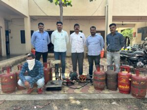 अहमदनगर (दि.७ ऑक्टोबर):-घरगुती गॅस टाकीतील गॅस अवैधरित्या एलपीजी वाहनात भरणारा आरोपी 67,000/- रु. किंमतीचे मुद्देमालासह स्थानिक गुन्हे शाखेकडुन जेरबंद,बातमीतील हकीकत अशी की,जिल्हा पोलीस अधीक्षक श्री.राकेश ओला यांनी पोनि/श्री.दिनेश आहेर, स्थानिक गुन्हे शाखा यांना जिल्ह्यातील अवैध धंद्यांची माहिती घेवुन कारवाई करणे बाबत आदेशित केले होते.