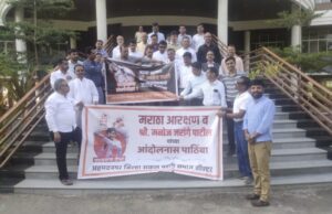 दिलेल्या निवेदनात म्हटले आहे की, नगर शहर मराठा डॉक्टर संघटना आपणास महाराष्ट्र शासन यांना निवेदन देत आहे की अंतरवाली सराट जिल्हा जालना येथे संघर्ष योद्धा मनोज जरांगे पाटील यांनी ओबीसी मधून मराठा समाजाला कायमस्वरूपी टिकणारे आरक्षण मिळावे म्हणून जे प्राणांतिक उपोषण सुरू केले आहे त्यास आम्ही नगर शहर मराठा डॉक्टर संघटना पाठिंबा देत आहोत तरी आपण महाराष्ट्र शासनास आमची मागणी कळवावी असे निवेदनात म्हटले आहे.यावेळी डॉ.सचिन पांडुळे,डॉ.अविनाश मोरे,डॉ, मंगेश काळे,डॉ,अरविंद गायकवाड,डॉ.बाबासाहेब शेवाळे,डॉ.रोहित करांडे,डॉ. संदीप अनभुले,डॉ.महेश डोके,डॉ.चंद्रकांत केवळ,डॉ. विजय कवळे,डॉ.दिलीप पवार,डॉ.सुनील बोठे,डॉ.मधुकर गव्हाणे,डॉ.मंगेश जाधव,डॉ.अमित पवार झुंजारराव झांजे इ.उपस्थित होते.