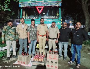 अरुण सुखदेव लंके (रा.चिखली ता.श्रीगोंदा) असे गुन्हा दाखल करण्यात आलेल्या ट्रक चालकाचे नाव आहे.याबाबत सविस्तर माहिती अशी की,कोतवाली पोलिसांना गुप्त बातमीदाराकडून माहिती मिळाली की,एक मालवाहतूक ट्रक (एम.डब्लू.ए ३९४९) या गाडीत बेकायदा विनापरवाना दारूची वाहतूक होत आहे.ही माहिती प्राप्त होताच गुन्हेशोध पथकाच्या अंमलदारांनी कायनेटिक चौकात सापळा लावून ट्रक थांबवून पाहणी केली असता ट्रॅकच्या कॅबिनमध्ये सात देशी विदेशी दारूचे बॉक्स आढळून आले.