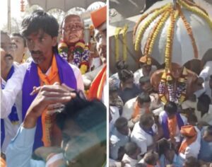 दरम्यान नगरमध्ये या पदयात्रेचे आर.पी.आय (आंबेडकर) पक्षाचे जिल्हा संपर्कप्रमुख रोहित आव्हाड,युवक शहराध्यक्ष संदीप वाघमारे,आणि त्यांच्या बरोबर असणाऱ्या शेकडो भीमसैकांनी शहरातील मार्केटयार्ड समोरील डॉ.बाबासाहेब आंबेडकर पुतळ्या समोर स्वागत केले.यावेळी आर.पी.आय (आंबेडकर )पक्षाच्या वतीने मराठा संघर्ष योद्धा मनोज जरांगे पाटील यांच्या आरक्षणाच्या लढ्याला जाहीर पाठिंबा देऊन घोषणा देण्यात आल्या.
