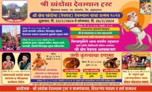संगमनेर (नितीन भालेराव):-राष्ट्रसंत गाडगे महाराज यांच्या पद्दस्पर्शाने पवित्र भूमीत,संगमनेर तालुक्यातील प्रती जेजुरी म्हणून प्रसिद्ध असलेले श्री क्षेत्र खंडोबा (देवगड) देवस्थान ट्रस्ट हिवरगाव पावसा येथे माघ पोर्णिमा यात्रा उत्सवास २३ फेब्रुवारी पासून प्रारंभ होत आहे.श्री क्षेत्र खंडोबा (देवगड) देवस्थान ट्रस्ट हिवरगाव पावसा येथे माघ पोर्णिमा यात्रा उत्सवा निमित्त भव्य स्वरुपाचे कार्यक्रमांचे आयोजन करण्यात आले आहे.