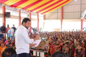 पाथर्डी शहर येथे हिरकणी लोकसंचित केंद्र,तालुका अभियान व्यवस्थापन कक्ष तथा ग्रामीण स्वयंरोजगार निर्मिती अंतर्गत साहित्य खासदार डॉ.सुजय विखे पाटील व आमदार मोनिका राजळे यांच्या हस्ते वाटप करण्यात आले.यावेळी स्वयंरोजगार विक्री केंद्र,फूड प्रोसेसिंग युनिट,औजारे बँक व बचत गटातील महिलांना बँक कर्ज वाटप करण्यात आले.यावेळी खासदार डॉ. सुजय विखे,आमदार मोनिकाताई राजळे व अभय काका आव्हाड यांनी उपस्थितांना यावेळी मार्गदर्शन केले.याप्रसंगी भाजप तालुका अध्यक्ष डॉ.मृत्युंजय गर्जे, अजय रक्ताटे,सुभाष बेर्डे, काशिनाथ लवांडे,विष्णुपंत अकोलकर,अंकुश चितळे, प्रतिक खेडकर यांच्यासह भाजपचे सर्व पदाधिकारी, ग्रामस्थ,अधिकारी व बचत गटातील महिला उपस्थित होत्या.पंतप्रधान नरेंद्र मोदी यांच्या संकल्पनेतून महिला सक्षमीकरण करण्यासाठी उमेद व महाविंग यांच्या सहकार्याने ग्रामीण भागातील सर्व महिला बचत गटांना आर्थिक व सक्षमीकरण केले जात आहे.