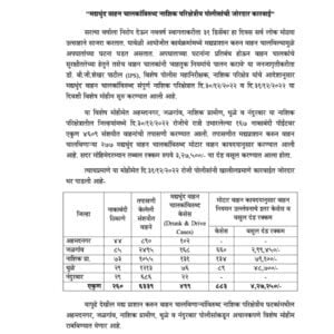 Share Facebook WhatsApp Telegram Twitter Copy Link अहमदनगर प्रतिनिधी (दि.२.जानेवारी):-मद्यधुंद वाहन चालकांविरुद्ध नाशिक परीक्षेत्रीय पोलिसांची जोरदार कारवाई,अहमदनगर जिल्ह्यात १०२ केसेस दाखल