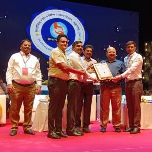 याप्रसंगी पुरस्कार स्वीकारताना डॉ.अभिजीत दिवटे, संचालक (वैद्यकीय), डॉ. दीपक अनाप, प्रकल्प समन्वयक व डॉ. अभिजित मेरेकर प्रशासकीय समन्वयक, जिल्हा दिव्यांग पुनर्वसन केंद्र, अहमदनगर तसेच डॉ. विठ्ठलराव विखे पाटील फाऊंडेशनचे सर्व सदस्य उपस्थित होते.