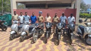 त्यावर पो.नि.श्री.आनंद कोकरे यांनी पथकातील अधिकारी व अंमलदारांनी भिस्तबाग महालाजवळ सापळा रचून संशईत इसम नामे अनिकेत विजय पारखे (रा.उक्कलगांव,ता-श्रीरामपुर,जि-अहमदनगर) यास ताब्यात घेतले,सदर इसमाचे कब्जात मिळून आलेल्या पल्सर मोटारसाययकल बाबत त्याचे कडे विचारपुस केली असता त्याने सुरुवातीला उडवा उड़वीची उत्तरे दिल्याने त्यास विश्वासात घेवून अधिक चीकशी केली असता त्याने सदर मोटारसायकल शिलाविहार परिसरातून चोरी केल्याचे कबुल करुन त्याने अहमदनगर शहरातील विविध पारिसरातील चोरी केलेल्या मोटारसायकल त्याच्या कब्जातून १)बजाज कंपनीची १५० सी सी मोटरसायकल, २)हिरो कंपनीची एच.एफ डिलक्स मॉडेलची काळया रंगाची मोटरसायकल,३) काळया रंगाची होन्डा कंपनीची युनिकॉर्न मोटरसायकल ४)सिल्व्रर रंगाची सुझूकी कंपनीची अॅक्सेस मोटरसायकल ५) सिल्क्वर रंगाची सुझुकी कंपनीचीअॅक्सेस मोटरसायकल ६) एक काळ्या रंगाची होंन्डा कंपनीची युनिकॉर्न मोटरसायकल ७)पांढ-या रंगाची सुझकी कंपनीची अॅक्सेसमोटर सायकल अशा एकुण ४ लाख ५,०০০/-रू. कि.च्या मोटारसायकली त्याच्या कब्जातून जप्त करण्यात आल्या.