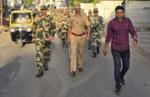मुकूंदनगर भागात इरिगेशन मस्जिद-बॉम्बे बेकरी-दरबार चौक-सहारा कॉर्नर-नगरी चहा-संभा टपरी चौक-फकीरवाडा रोड-वाबळे कॉलनी-बॉम्बे बेकरी व इरीगेशन मस्जिद तसेच भिंगार शहरात पंचशिल कमान-खळेवाडी-नेहरु चौक-शिवाजी चौक-ब्राम्हण गल्ली-भिंगार वेस-गवळीवाडा-सदर बाजार या भागात रुट मार्च घेण्यात केला.या रुटमार्च करीता भिंगार कॅम्प पो.स्टे.चे प्रभारी अधिकारी श्री.योगेश राजगुरु,BSF बटालियन अधिकारी व जवान तसेच RPC प्लाटुन जवान यावेळी उपस्थित होते.