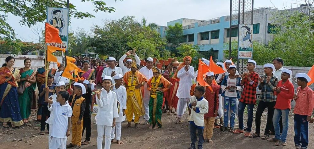 साकुर (दि.१७ जुलै):- पंढरीची वारकरी..उन्ह पावसाची चिंता कोण करी…असे म्हणत लाखो विठ्ठल भक्त वारकरी पंढरपूरच्या विठ्ठलाला भेट देतात.जो वारकऱ्यांचा समूह मिळून वारीला जातो त्याला दिंडी म्हणून ओळखले जाते.वारी ही महाराष्ट्रातील एक धार्मिक व सांस्कृतिक परंपरा आहे.संगमनेर तालुक्यातील सकुर येथील शासकीय माध्यमिक आश्रम शाळा येथे आषाढी एकादशी निमित्त वारकरी संस्कृतीचे परिचय व परंपरा यांचे संस्कार विद्यार्थ्यावर होण्यासाठी पारंपारिक दिंडी उपक्रमाचे आयोजन थाटात करण्यात आले.